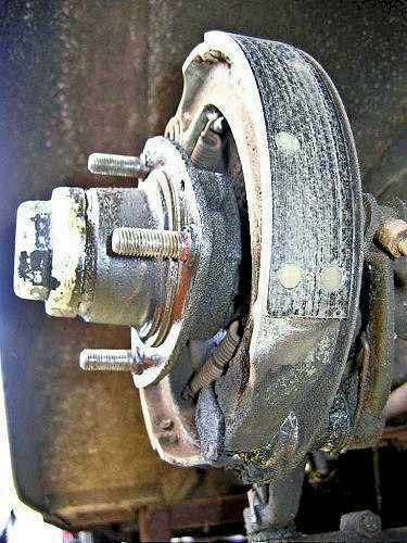 Being purely mechanical, the brakes worked even after having stood for 25 years. Subsequently all linings were found to be down to the rivets though the steel drums have not been damaged by the rivet heads!