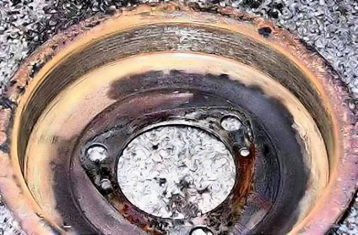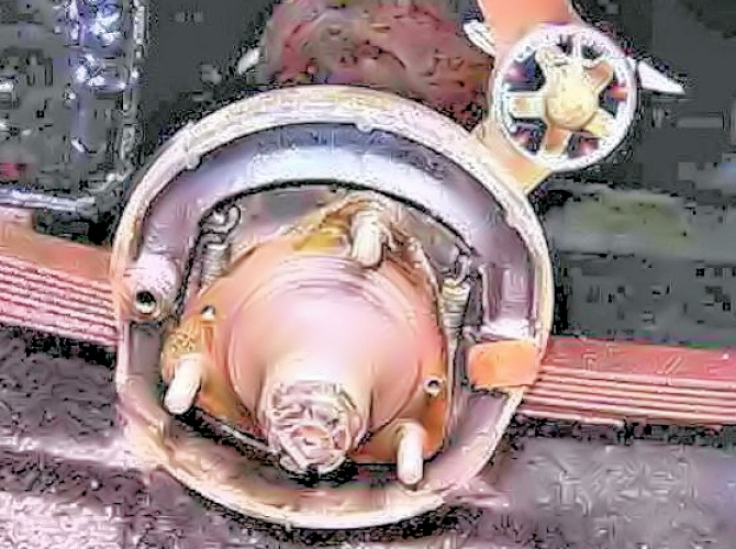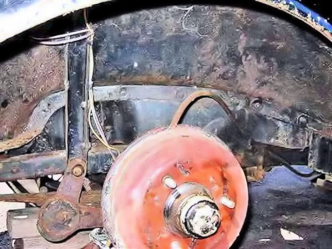It was necessary to jack the car up in order to adjust and fit the new exhaust system. Undoing the wheel nuts revealed that, although the handbrake was on, the front nearside wheel could still be rotated . . . . .