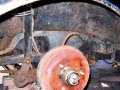 Being purely mechanical, the brakes worked even after having stood for 25 years. Friction in the linkages means that they are not very good at stopping the car! Lifting the floorboards to get at the gearbox gave an initial opportunity to reduce play in the brake cross-shaft