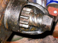 The Bendix drive of the Starter Motor appears to be OK - this version has no return spring, but has two metal fingers to hold the pinion in the disengaged position.