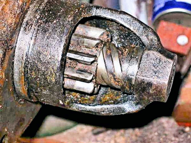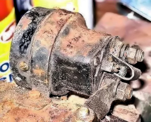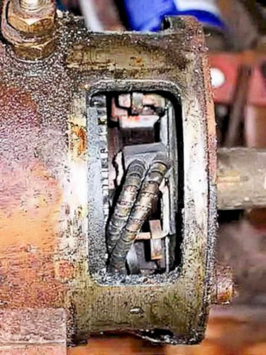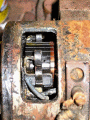 When dismantled, the Starter Motor endplate was very oily and grubby; two of the brush springs were broken