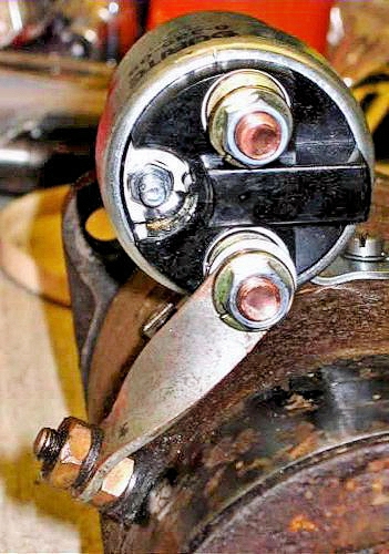 the solenoid mounted on top of the starter has no economy coil and gets hot very quickly - so keep starting bursts short