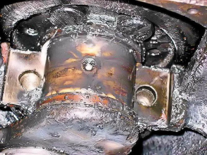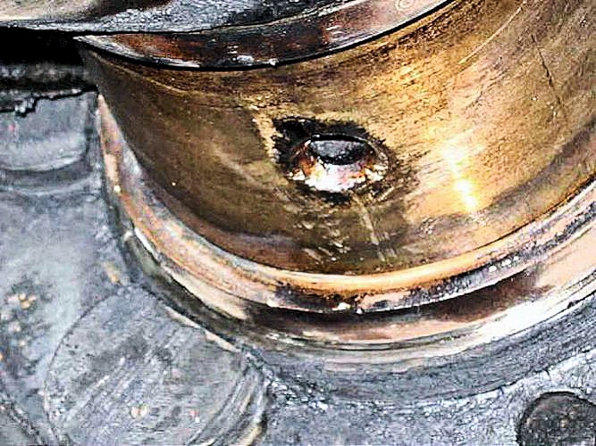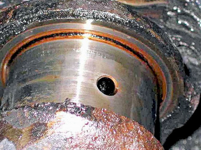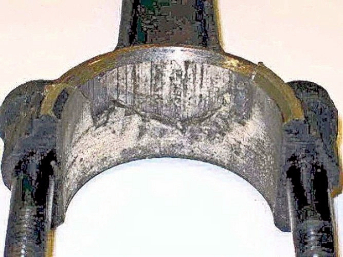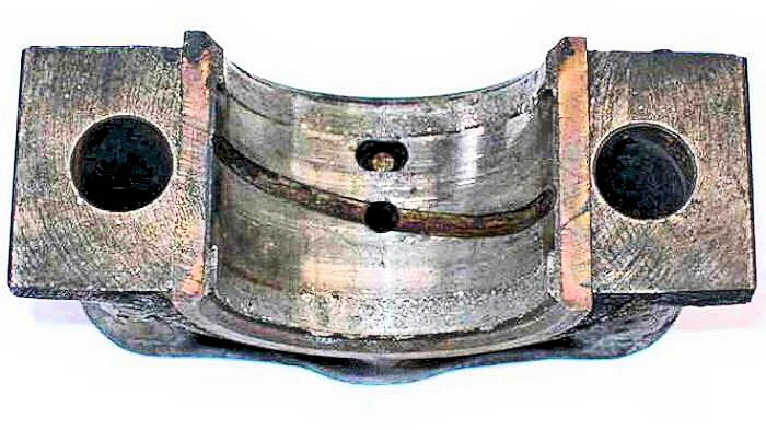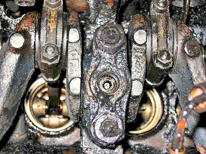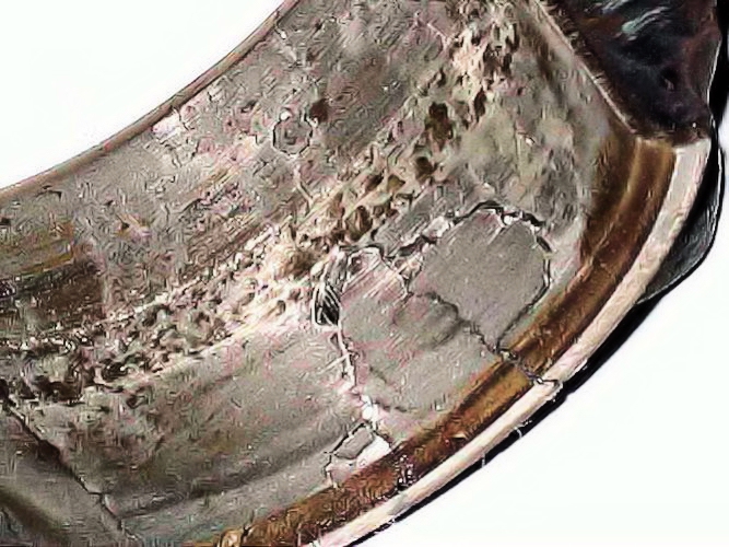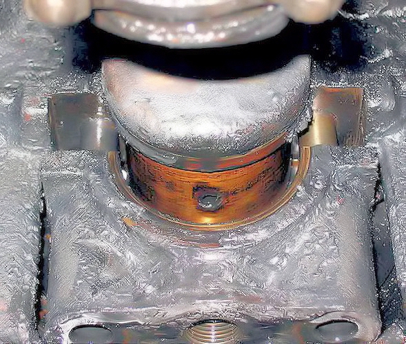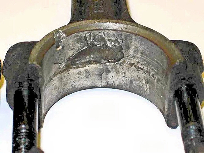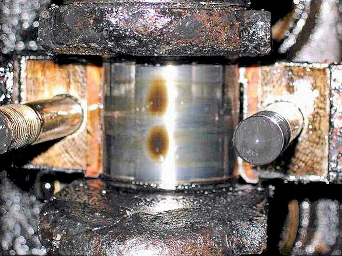 Checking the white-metal big-end bearings showed that 7 of the 8 white metal bearing "shells" were very badly fatigued.