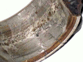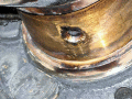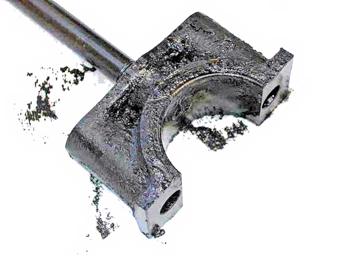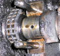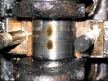 Notice that at least one part of the bearing surface is still present all the way around, so no big-end play was detected and oil pressure appeared OK (in fact rather higher than expected, which led to the investigation in the first place!)