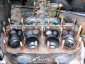 Also had a bit of problem with the worn out starter handle nut on the front of the crankshaft. I used a big spanner, stillsons and extension levers - together with a soaking in Plus Gas of course. I bent extension levers.
