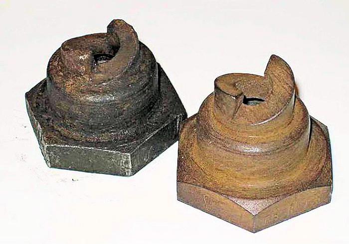 Once off, it was a simple matter to screw on the new one - NOT! The new nut had surface rust on the threads - Admiralty 20tpi threads - not exactly available any more! So there was no possibility of running a tap down the threads.