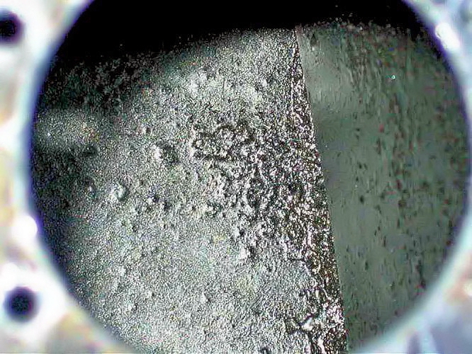Various views inside the tank show that initial coverage was not perfect (two unexpectedly large baffles inside) but that the Slosh did stabilise the rust particles I hadn't managed to dislodge !