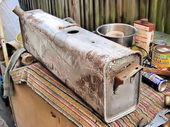 Then POR15 "Metal Ready" prepared the inside for POR15 "Fuel Tank Sealer" from Frost Auto Restoration.