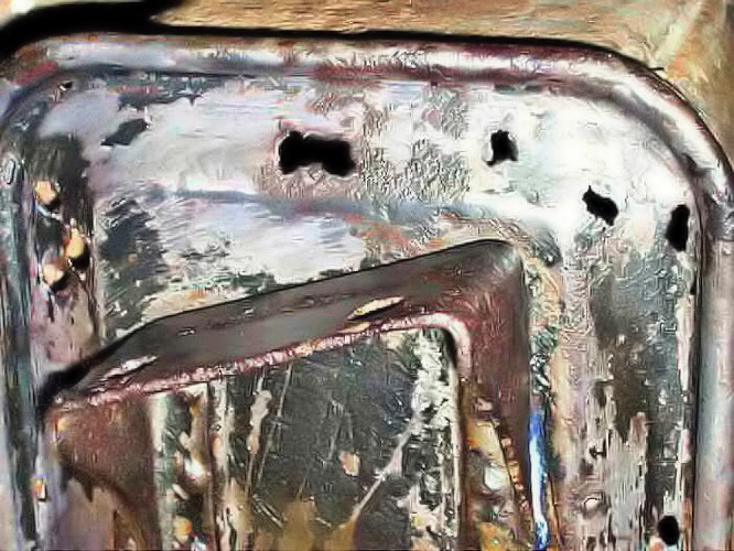 After cleaning up and a bit of wire brushing more significant holes appeared in one end plate of the tank.