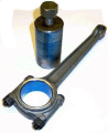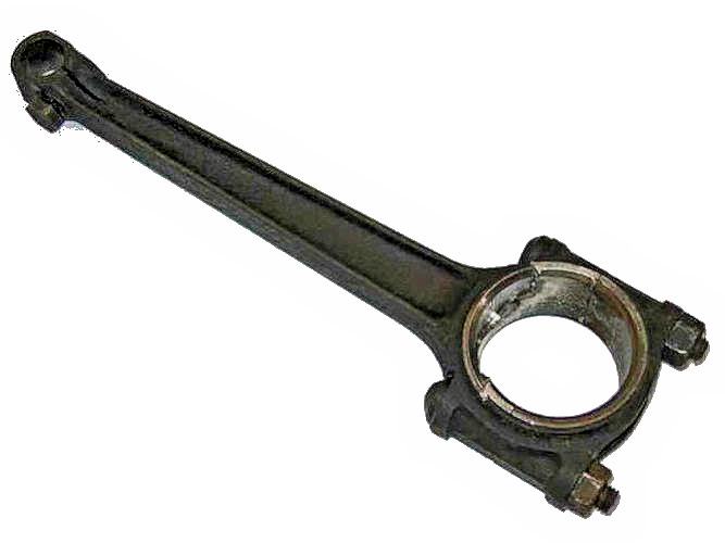 The small-ends are secured to the piston by a gudgeon-pin held in the end of the con-rod by a shanked bolt.