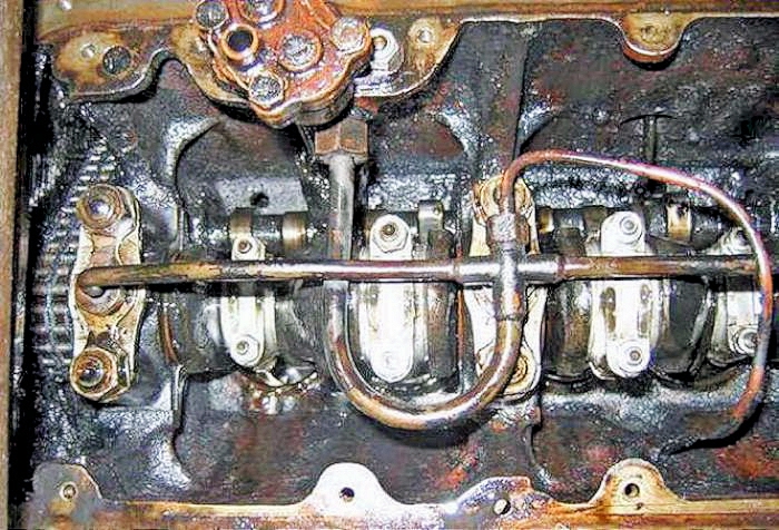 As can be seen, the oil pump pickup is very close to the edge of the oil filter which can mean that the cooler oil in the rest of the sump is not circulating.