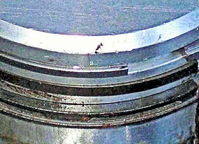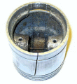 The top ring is a ridge-dodger, the top edge being cut away so as to miss the ridge at the top of the bore.