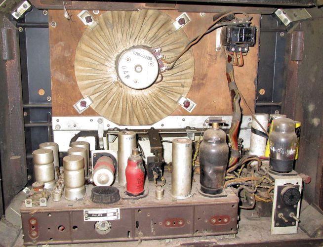 Typical Philips complicated pointer drive - the single dial light lights up the glass magnifying pointer