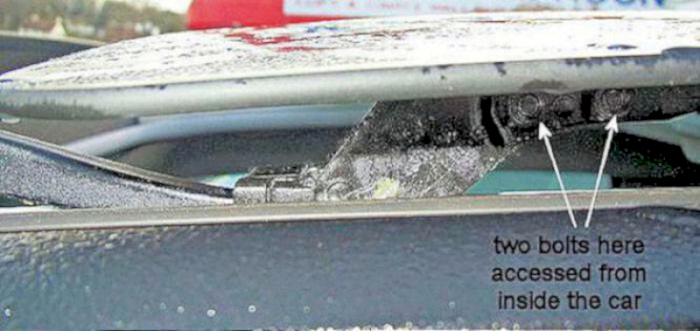 The sliding roof section is held by two T20 Torx bolts each side at the front - accessible from inside the car with the roof half open