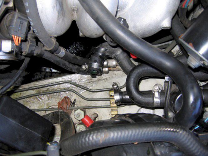 Remove the return hose to the heater from the heater valve. (no need to drain the radiator).